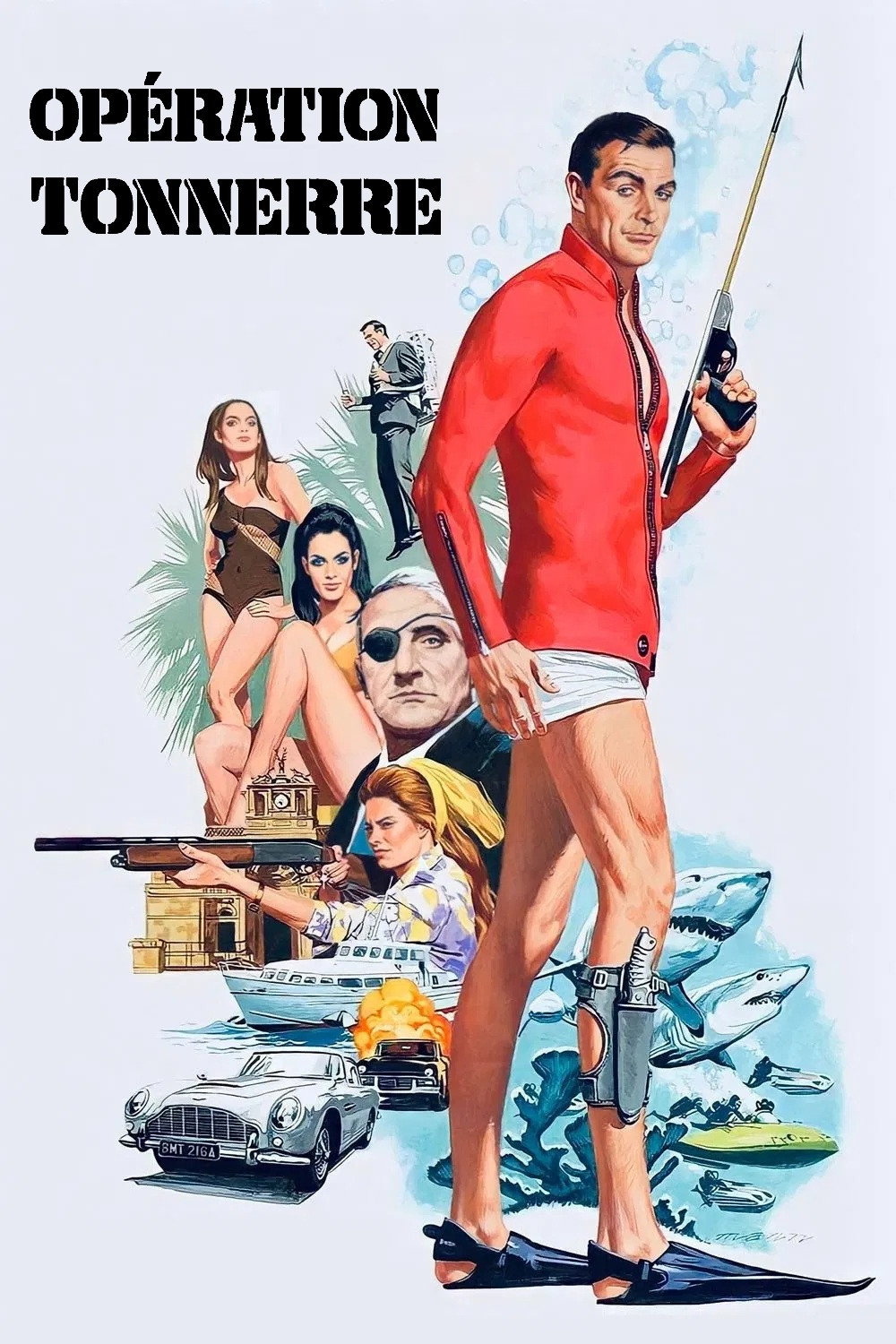 L'organisation criminelle SPECTRE détourne un avion de l'OTAN transportant deux bombes atomiques et réclame une rançon au gouvernement britannique. L'agent secret James Bond est envoyé aux Bahamas à la recherche de Domino, la sœur du commandant Derval, qui pilotait le Vulcan. Celui-ci a en fait été tué et remplacé par un sosie. 007 découvre que l'instigateur de l'opération est un dénommé Emilio Largo, un homme riche et cruel passionné par les requins.